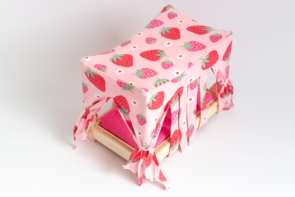 Das Himmelbett wird mit einer Liegefläche und einem Himmel aus Fleece geliefert.