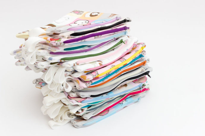 Wir nähen unterschiedlich farbige Reißverschlüsse passend zum Stoff ein und versenden zufällig.